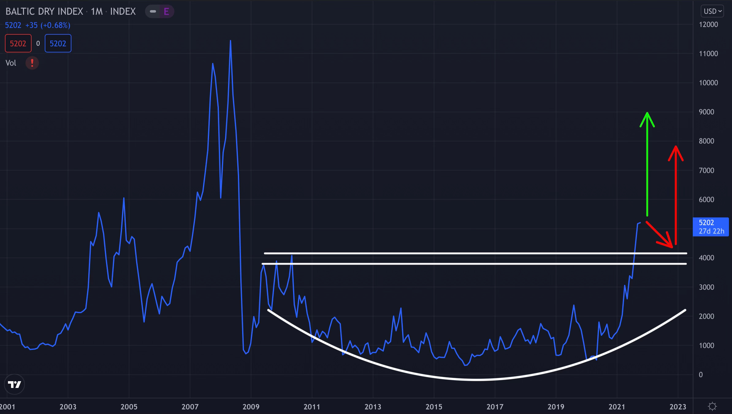 We’ve officially confirmed a breakout extension, implying that the MOST LIKELY scenario is for the BDI to continue to ascend higher. As with all breakouts, I’m prepared for the index to decline, retest the breakout zone, and then continue to climb higher. Either of these two scenarios are the most probable cases in my opinion, and the fundamental factors to enable these extensions are in place. The technical analysis I’ve provided is always more powerful when the fundamental thesis remains strong.