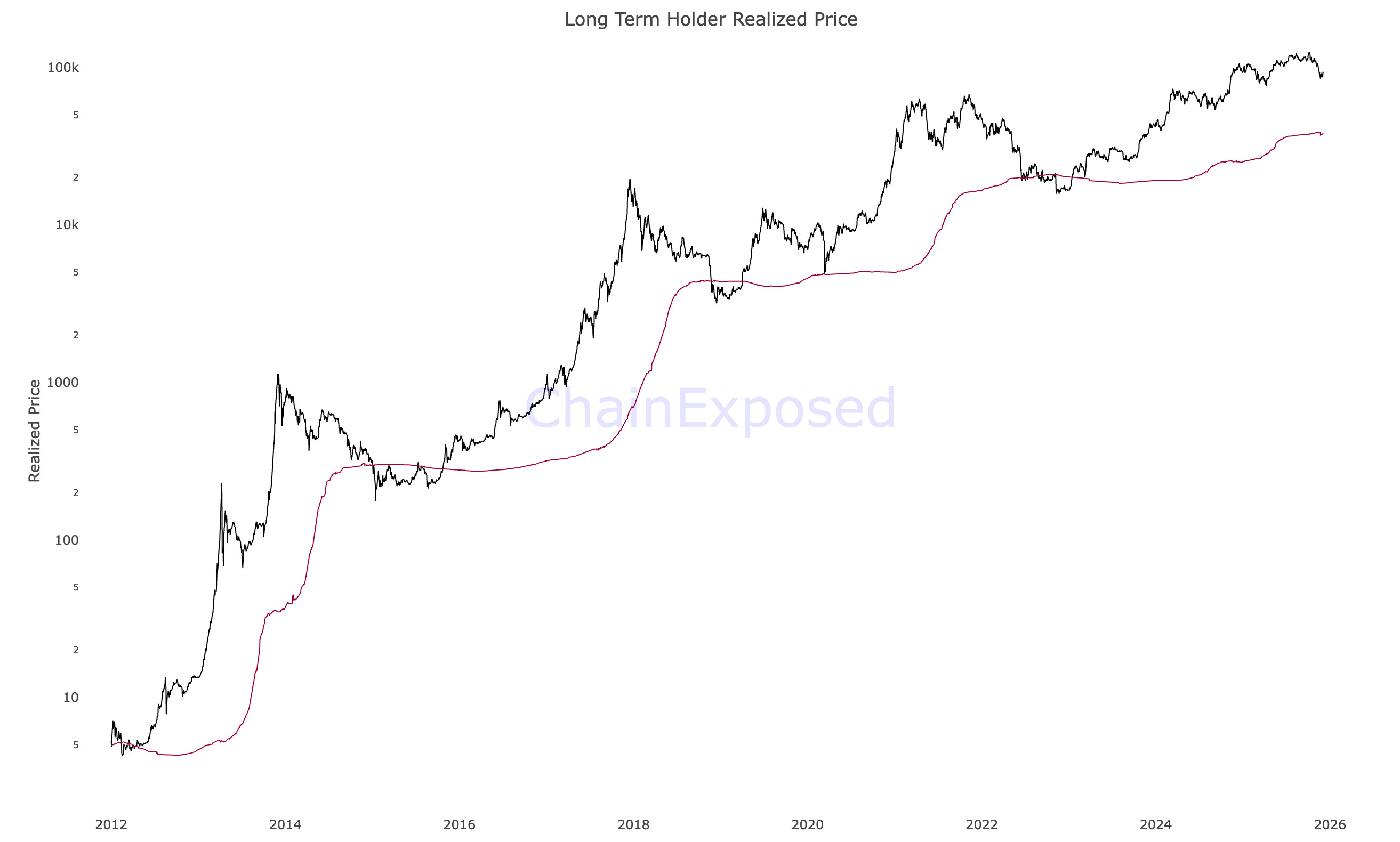 I’m talking about the long-term holder realized price (LTHRP), which measure the cost per BTC of all Bitcoin that have been unmoved for at least 155 days. In other words, it’s the cost basis of all Bitcoin that were purchased more than 155 days ago, reflecting the conviction and accumulation behavior of committed investors.
