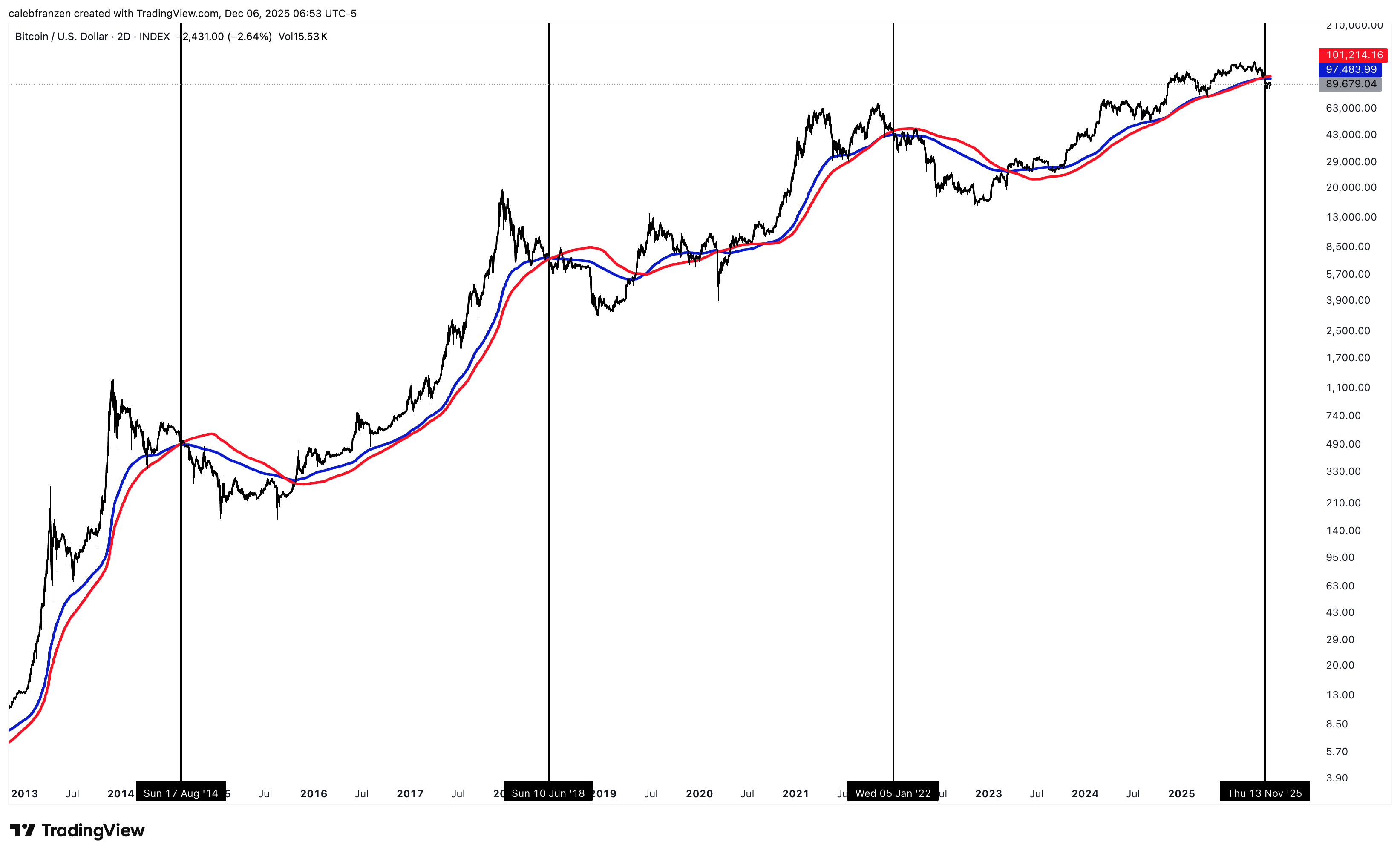 If Bitcoin manages to get back above its 2-day 200 moving average cloud (the bull vs. bear market line in the sand that I’ve been sharing since February 2025), then I’ll proclaim that the bear market is over and that we’re back in an uptrend/bull market.